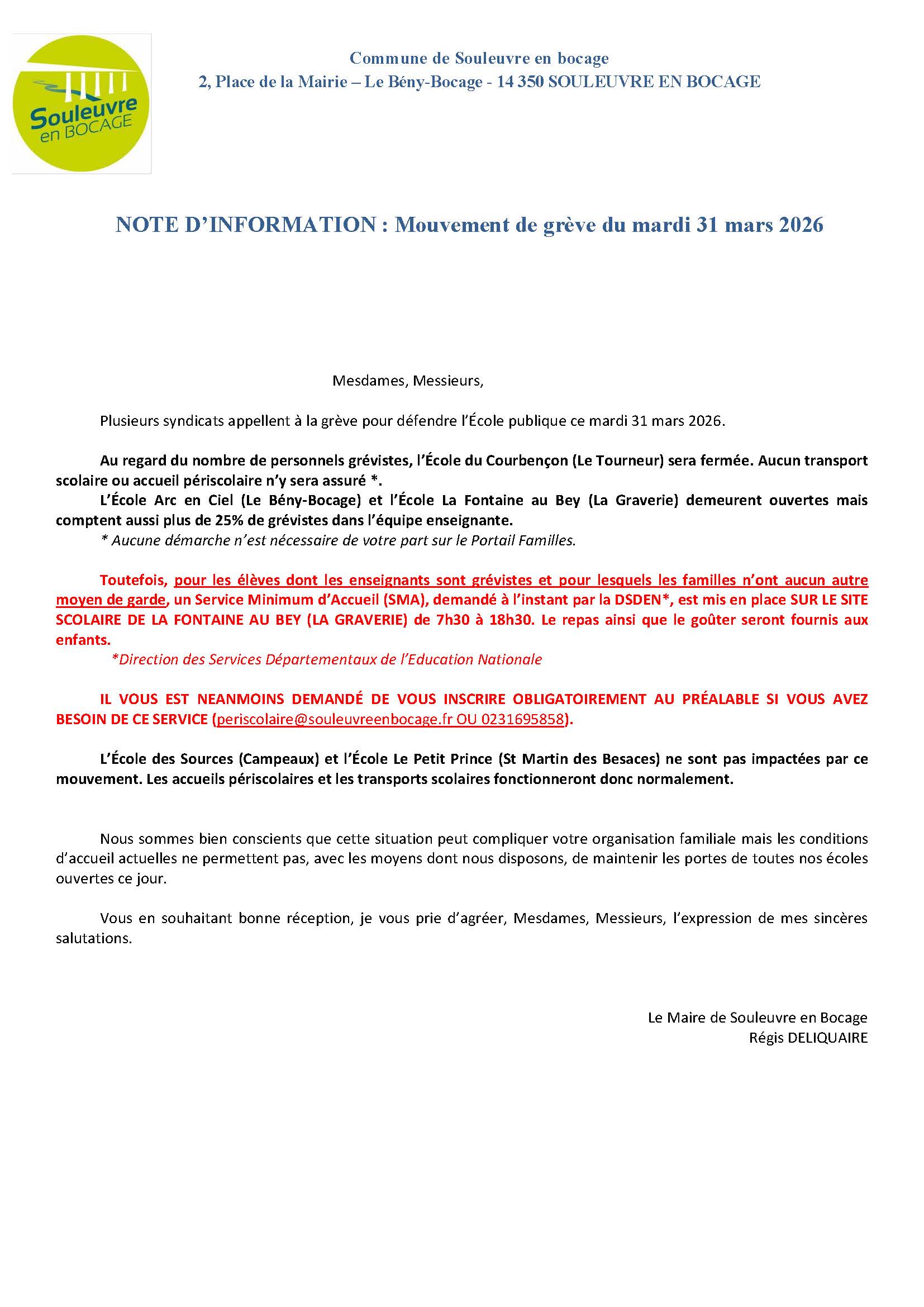 • Grève du 31 mars 2026