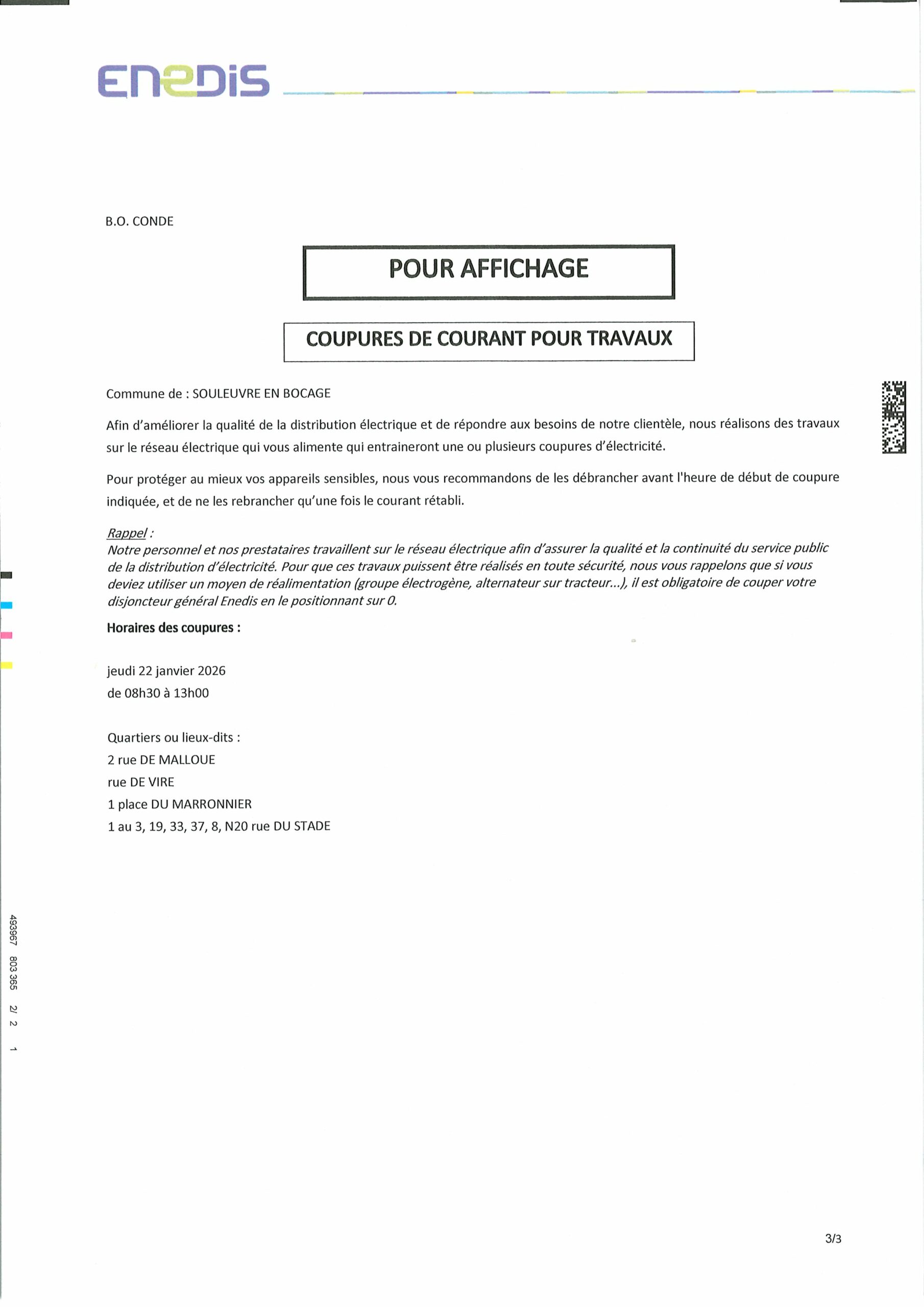 22 janvier : Coupure électricité à Campeaux