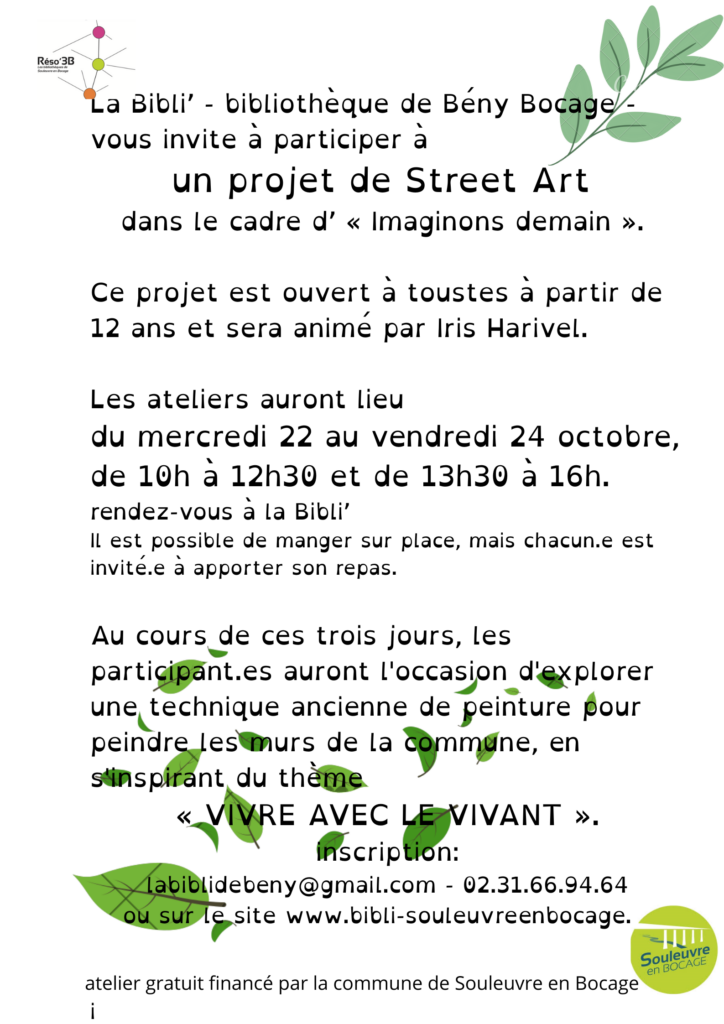 • Du 22 au 24 octobre : projet Street Art à la bibli’ de Bény
