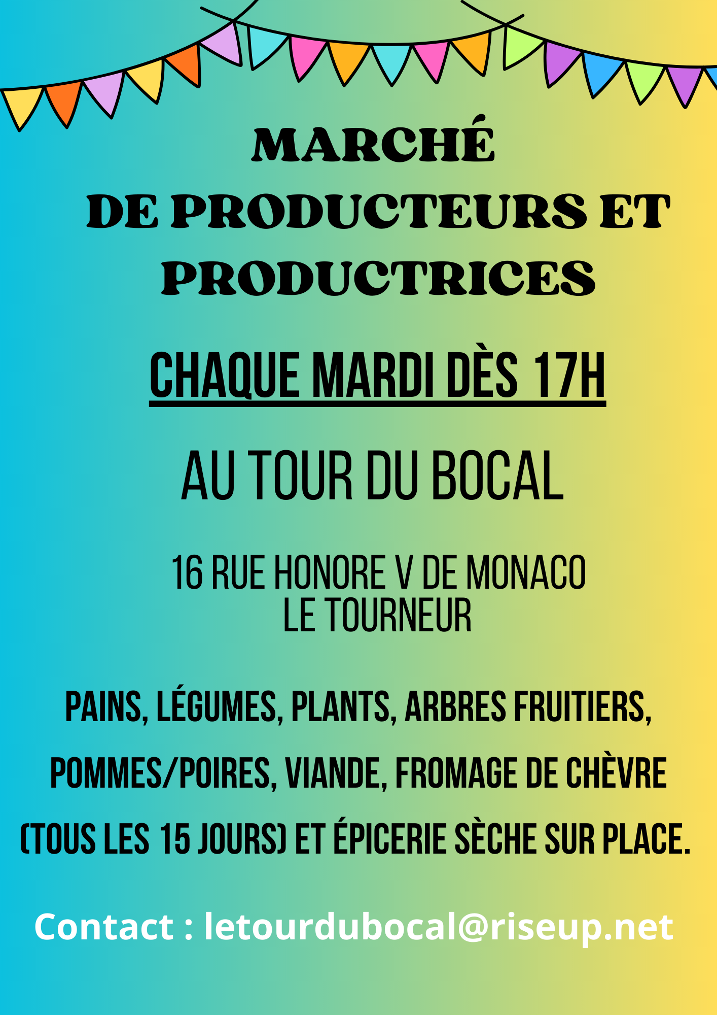 Tous les mardis à 17h : marché au Tour du Bocal du Tourneur