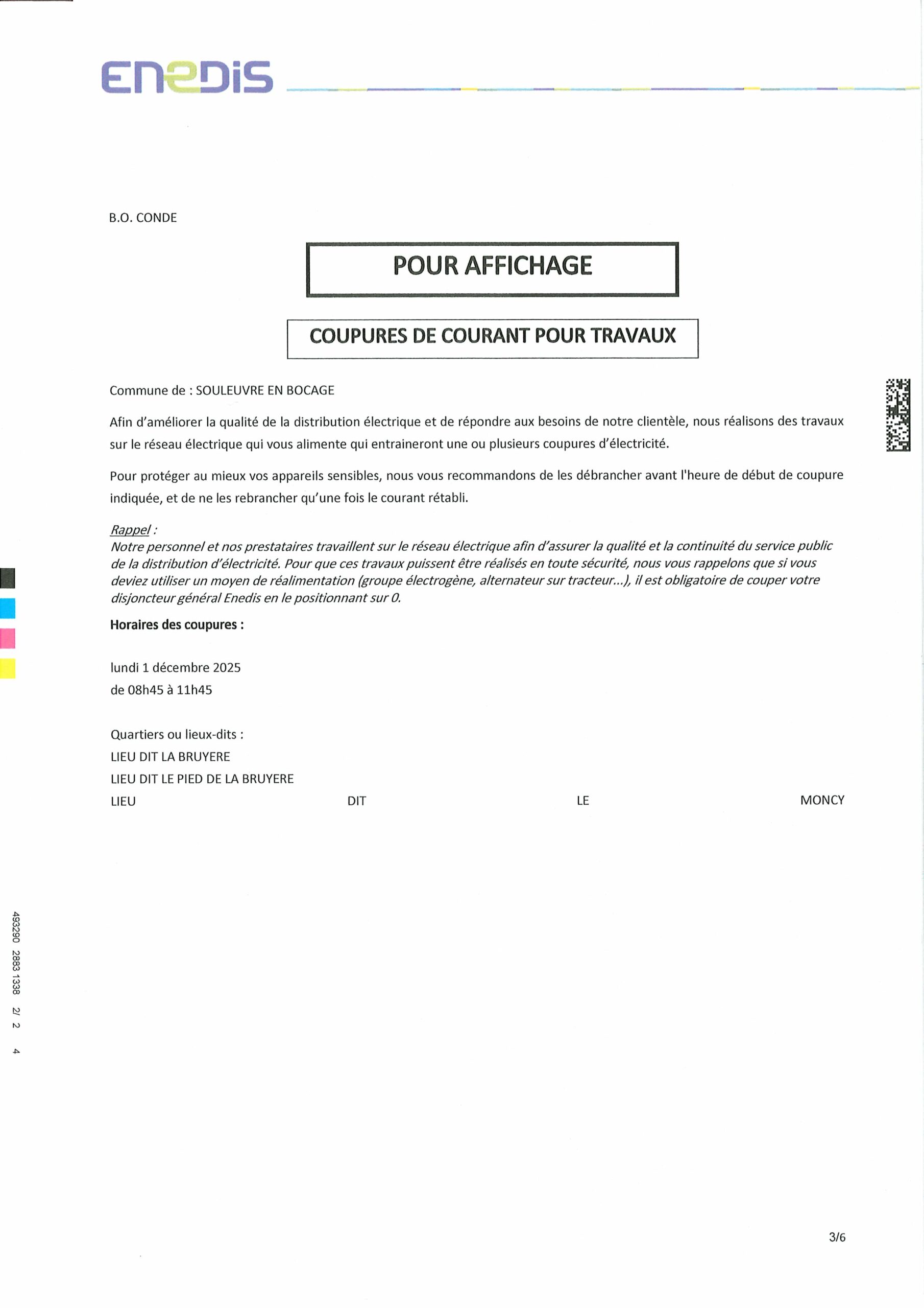 1er décembre : Coupure électricité sur Montchauvet